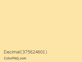 Decimal 375624601 Color is a very light orange color and the nearest color is Cape Honey #fee5ac. Hex code #fde5a7 and RGB value is rgb(253,229,167). In RGB color space, this color is composed of 99% red, 90% green, 65% blue, In CMYK color space, this color is composed of 0% cyan, 9% magenta, 34% yellow , 1% black , In HSL color space, this color has a hue angle of 43° , 96% saturation and 82% lightness.