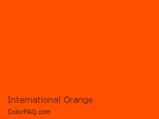 Decimal 376641796 Color is a normal orange color, the color name is International Orange and the nearest color is Vermilion #ff4d00. Hex code #ff4f00 and RGB value is rgb(255,79,0). In RGB color space, this color is composed of 100% red, 31% green, 0% blue, In CMYK color space, this color is composed of 0% cyan, 69% magenta, 100% yellow , 0% black , In HSL color space, this color has a hue angle of 19° , 100% saturation and 50% lightness.