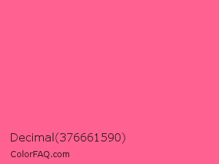 Decimal 376661590 Color is a light rose color and the nearest color is Strawberry #fc5a8d. Hex code #ff6190 and RGB value is rgb(255,97,144). In RGB color space, this color is composed of 100% red, 38% green, 56% blue, In CMYK color space, this color is composed of 0% cyan, 62% magenta, 44% yellow , 0% black , In HSL color space, this color has a hue angle of 342° , 100% saturation and 69% lightness.