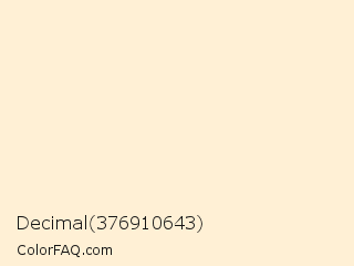 Decimal 376910643 Color is a very light orange color and the nearest color is Papaya Whip #ffefd5. Hex code #fff0d5 and RGB value is rgb(255,240,213). In RGB color space, this color is composed of 100% red, 94% green, 84% blue, In CMYK color space, this color is composed of 0% cyan, 6% magenta, 16% yellow , 0% black , In HSL color space, this color has a hue angle of 39° , 100% saturation and 92% lightness.