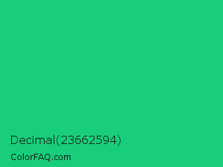 Decimal 23662594 Color is a normal green color and the nearest color is Mountain Meadow Crayola #1ab385. Hex code #19cd7a and RGB value is rgb(25,205,122). In RGB color space, this color is composed of 10% red, 80% green, 48% blue, In CMYK color space, this color is composed of 88% cyan, 0% magenta, 40% yellow , 20% black , In HSL color space, this color has a hue angle of 152° , 78% saturation and 45% lightness.