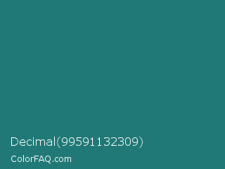 Decimal 99591132309 Color is a dark cyan color and the nearest color is Elm #1c7c7d. Hex code #207977 and RGB value is rgb(32,121,119). In RGB color space, this color is composed of 13% red, 47% green, 47% blue, In CMYK color space, this color is composed of 74% cyan, 0% magenta, 2% yellow , 53% black , In HSL color space, this color has a hue angle of 179° , 58% saturation and 30% lightness.