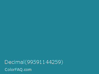 Decimal 99591144259 Color is a normal cyan color and the nearest color is Jelly Bean #297b9a. Hex code #208497 and RGB value is rgb(32,132,151). In RGB color space, this color is composed of 13% red, 52% green, 59% blue, In CMYK color space, this color is composed of 79% cyan, 13% magenta, 0% yellow , 41% black , In HSL color space, this color has a hue angle of 190° , 65% saturation and 36% lightness.