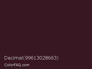 Decimal 99613028663 Color is a very dark rose color and the nearest color is Jon #3b1f1f. Hex code #371521 and RGB value is rgb(55,21,33). In RGB color space, this color is composed of 22% red, 8% green, 13% blue, In CMYK color space, this color is composed of 0% cyan, 62% magenta, 40% yellow , 78% black , In HSL color space, this color has a hue angle of 339° , 45% saturation and 15% lightness.