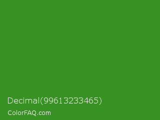 Decimal 99613233465 Color is a normal green color and the nearest color is La Palma #368716. Hex code #379223 and RGB value is rgb(55,146,35). In RGB color space, this color is composed of 22% red, 57% green, 14% blue, In CMYK color space, this color is composed of 62% cyan, 0% magenta, 76% yellow , 43% black , In HSL color space, this color has a hue angle of 109° , 61% saturation and 35% lightness.