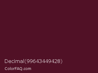 Decimal 99643449428 Color is a very dark rose color and the nearest color is Maroon Oak #520c17. Hex code #511126 and RGB value is rgb(81,17,38). In RGB color space, this color is composed of 32% red, 7% green, 15% blue, In CMYK color space, this color is composed of 0% cyan, 79% magenta, 53% yellow , 68% black , In HSL color space, this color has a hue angle of 340° , 65% saturation and 19% lightness.