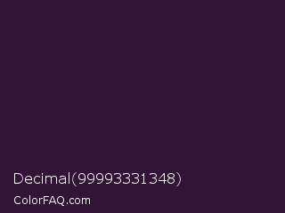 Decimal 99993331348 Color is a very dark magenta color and the nearest color is Dark Purple #301934. Hex code #321536 and RGB value is rgb(50,21,54). In RGB color space, this color is composed of 20% red, 8% green, 21% blue, In CMYK color space, this color is composed of 7% cyan, 61% magenta, 0% yellow , 79% black , In HSL color space, this color has a hue angle of 293° , 44% saturation and 15% lightness.