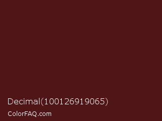Decimal 100126919065 Color is a very dark red color and the nearest color is Heath #541012. Hex code #501617 and RGB value is rgb(80,22,23). In RGB color space, this color is composed of 31% red, 9% green, 9% blue, In CMYK color space, this color is composed of 0% cyan, 73% magenta, 71% yellow , 69% black , In HSL color space, this color has a hue angle of 359° , 57% saturation and 20% lightness.