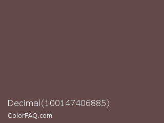 Decimal 100147406885 Color is a normal red color and the nearest color is Rose Ebony #674846. Hex code #644949 and RGB value is rgb(100,73,73). In RGB color space, this color is composed of 39% red, 29% green, 29% blue, In CMYK color space, this color is composed of 0% cyan, 27% magenta, 27% yellow , 61% black , In HSL color space, this color has a hue angle of 0° , 16% saturation and 34% lightness.