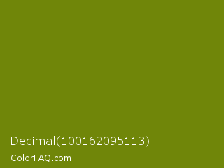 Decimal 100162095113 Color is a dark lime color and the nearest color is Olive #808000. Hex code #708609 and RGB value is rgb(112,134,9). In RGB color space, this color is composed of 44% red, 53% green, 4% blue, In CMYK color space, this color is composed of 16% cyan, 0% magenta, 93% yellow , 47% black , In HSL color space, this color has a hue angle of 71° , 87% saturation and 28% lightness.