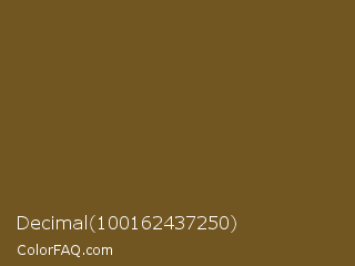Decimal 100162437250 Color is a dark orange color and the nearest color is Field Drab #6c541e. Hex code #715622 and RGB value is rgb(113,86,34). In RGB color space, this color is composed of 44% red, 34% green, 13% blue, In CMYK color space, this color is composed of 0% cyan, 24% magenta, 70% yellow , 56% black , In HSL color space, this color has a hue angle of 39° , 54% saturation and 29% lightness.