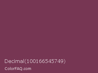 Decimal 100166545749 Color is a normal rose color and the nearest color is Cosmic #76395d. Hex code #773653 and RGB value is rgb(119,54,83). In RGB color space, this color is composed of 47% red, 21% green, 33% blue, In CMYK color space, this color is composed of 0% cyan, 55% magenta, 30% yellow , 53% black , In HSL color space, this color has a hue angle of 333° , 38% saturation and 34% lightness.