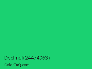 Decimal 24474963 Color is a normal green color and the nearest color is UFO Green #3cd070. Hex code #1ad171 and RGB value is rgb(26,209,113). In RGB color space, this color is composed of 10% red, 82% green, 44% blue, In CMYK color space, this color is composed of 88% cyan, 0% magenta, 46% yellow , 18% black , In HSL color space, this color has a hue angle of 149° , 78% saturation and 46% lightness.