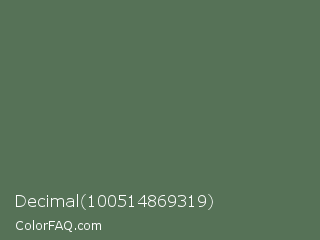 Decimal 100514869319 Color is a normal green color and the nearest color is Cactus #587156. Hex code #567257 and RGB value is rgb(86,114,87). In RGB color space, this color is composed of 34% red, 45% green, 34% blue, In CMYK color space, this color is composed of 25% cyan, 0% magenta, 24% yellow , 55% black , In HSL color space, this color has a hue angle of 122° , 14% saturation and 39% lightness.