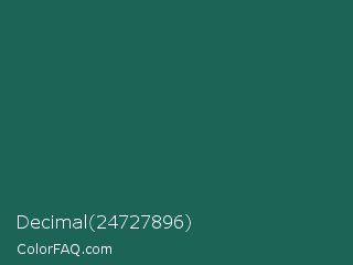 Decimal 24727896 Color is a dark cyan color and the nearest color is Eden #105852. Hex code #1b6456 and RGB value is rgb(27,100,86). In RGB color space, this color is composed of 11% red, 39% green, 34% blue, In CMYK color space, this color is composed of 73% cyan, 0% magenta, 14% yellow , 61% black , In HSL color space, this color has a hue angle of 168° , 57% saturation and 25% lightness.