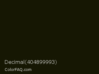 Decimal 404899993 Color is a almost black yellow color and the nearest color is Acadia #1b1404. Hex code #161703 and RGB value is rgb(22,23,3). In RGB color space, this color is composed of 9% red, 9% green, 1% blue, In CMYK color space, this color is composed of 4% cyan, 0% magenta, 87% yellow , 91% black , In HSL color space, this color has a hue angle of 63° , 77% saturation and 5% lightness.
