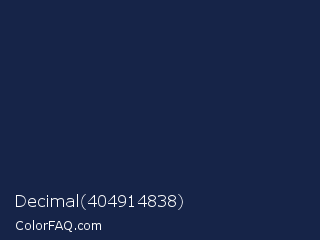 Decimal 404914838 Color is a very dark blue color and the nearest color is Blue Zodiac #13264d. Hex code #162448 and RGB value is rgb(22,36,72). In RGB color space, this color is composed of 9% red, 14% green, 28% blue, In CMYK color space, this color is composed of 69% cyan, 50% magenta, 0% yellow , 72% black , In HSL color space, this color has a hue angle of 223° , 53% saturation and 18% lightness.