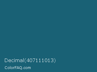 Decimal 407111013 Color is a dark cyan color and the nearest color is Blumine #18587a. Hex code #196175 and RGB value is rgb(25,97,117). In RGB color space, this color is composed of 10% red, 38% green, 46% blue, In CMYK color space, this color is composed of 79% cyan, 17% magenta, 0% yellow , 54% black , In HSL color space, this color has a hue angle of 193° , 65% saturation and 28% lightness.