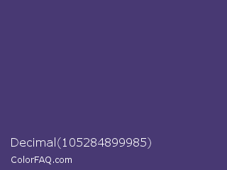 Decimal 105284899985 Color is a normal indigo color and the nearest color is Minsk #3f307f. Hex code #483973 and RGB value is rgb(72,57,115). In RGB color space, this color is composed of 28% red, 22% green, 45% blue, In CMYK color space, this color is composed of 37% cyan, 50% magenta, 0% yellow , 55% black , In HSL color space, this color has a hue angle of 256° , 34% saturation and 34% lightness.