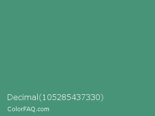 Decimal 105285437330 Color is a normal green color and the nearest color is Wintergreen Dream #56887d. Hex code #489478 and RGB value is rgb(72,148,120). In RGB color space, this color is composed of 28% red, 58% green, 47% blue, In CMYK color space, this color is composed of 51% cyan, 0% magenta, 19% yellow , 42% black , In HSL color space, this color has a hue angle of 158° , 35% saturation and 43% lightness.