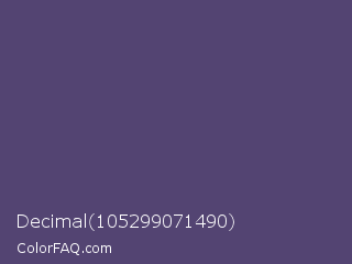Decimal 105299071490 Color is a normal indigo color and the nearest color is Cyber Grape #58427c. Hex code #534472 and RGB value is rgb(83,68,114). In RGB color space, this color is composed of 33% red, 27% green, 45% blue, In CMYK color space, this color is composed of 27% cyan, 40% magenta, 0% yellow , 55% black , In HSL color space, this color has a hue angle of 260° , 25% saturation and 36% lightness.