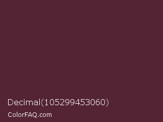 Decimal 105299453060 Color is a dark rose color and the nearest color is Wine Berry #591d35. Hex code #542434 and RGB value is rgb(84,36,52). In RGB color space, this color is composed of 33% red, 14% green, 20% blue, In CMYK color space, this color is composed of 0% cyan, 57% magenta, 38% yellow , 67% black , In HSL color space, this color has a hue angle of 340° , 40% saturation and 24% lightness.