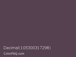 Decimal 105300317298 Color is a dark magenta color and the nearest color is Mortar #504351. Hex code #554150 and RGB value is rgb(85,65,80). In RGB color space, this color is composed of 33% red, 25% green, 31% blue, In CMYK color space, this color is composed of 0% cyan, 24% magenta, 6% yellow , 67% black , In HSL color space, this color has a hue angle of 315° , 13% saturation and 29% lightness.