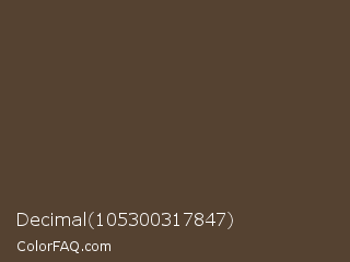 Decimal 105300317847 Color is a dark orange color and the nearest color is Judge Gray #544333. Hex code #554231 and RGB value is rgb(85,66,49). In RGB color space, this color is composed of 33% red, 26% green, 19% blue, In CMYK color space, this color is composed of 0% cyan, 22% magenta, 42% yellow , 67% black , In HSL color space, this color has a hue angle of 28° , 27% saturation and 26% lightness.