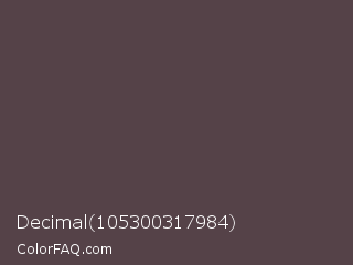 Decimal 105300317984 Color is a dark rose color and the nearest color is Emperor #514649. Hex code #554248 and RGB value is rgb(85,66,72). In RGB color space, this color is composed of 33% red, 26% green, 28% blue, In CMYK color space, this color is composed of 0% cyan, 22% magenta, 15% yellow , 67% black , In HSL color space, this color has a hue angle of 341° , 13% saturation and 30% lightness.