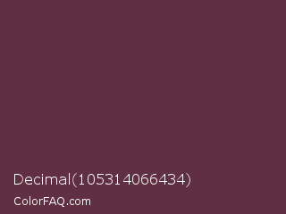 Decimal 105314066434 Color is a dark rose color and the nearest color is Wine Dregs #673147. Hex code #603042 and RGB value is rgb(96,48,66). In RGB color space, this color is composed of 38% red, 19% green, 26% blue, In CMYK color space, this color is composed of 0% cyan, 50% magenta, 31% yellow , 62% black , In HSL color space, this color has a hue angle of 338° , 33% saturation and 28% lightness.
