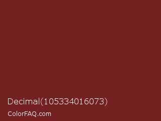 Decimal 105334016073 Color is a dark red color and the nearest color is Crown Of Thorns #771f1f. Hex code #742121 and RGB value is rgb(116,33,33). In RGB color space, this color is composed of 45% red, 13% green, 13% blue, In CMYK color space, this color is composed of 0% cyan, 72% magenta, 72% yellow , 55% black , In HSL color space, this color has a hue angle of 0° , 56% saturation and 29% lightness.