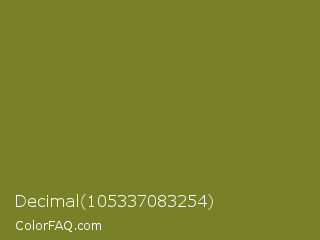 Decimal 105337083254 Color is a normal yellow color and the nearest color is Pacifika #778120. Hex code #788128 and RGB value is rgb(120,129,40). In RGB color space, this color is composed of 47% red, 51% green, 16% blue, In CMYK color space, this color is composed of 7% cyan, 0% magenta, 69% yellow , 49% black , In HSL color space, this color has a hue angle of 66° , 53% saturation and 33% lightness.