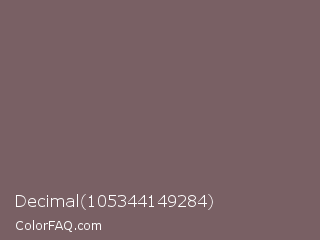 Decimal 105344149284 Color is a normal red color and the nearest color is Deep Taupe #7e5e60. Hex code #796064 and RGB value is rgb(121,96,100). In RGB color space, this color is composed of 47% red, 38% green, 39% blue, In CMYK color space, this color is composed of 0% cyan, 21% magenta, 17% yellow , 53% black , In HSL color space, this color has a hue angle of 350° , 12% saturation and 43% lightness.