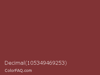 Decimal 105349469253 Color is a normal red color and the nearest color is Lotus #863c3c. Hex code #813335 and RGB value is rgb(129,51,53). In RGB color space, this color is composed of 51% red, 20% green, 21% blue, In CMYK color space, this color is composed of 0% cyan, 60% magenta, 59% yellow , 49% black , In HSL color space, this color has a hue angle of 358° , 43% saturation and 35% lightness.