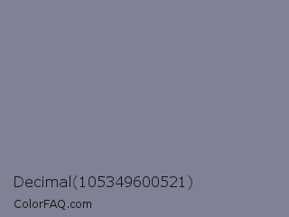 Decimal 105349600521 Color is a normal blue color and the nearest color is Waterloo #7b7c94. Hex code #818195 and RGB value is rgb(129,129,149). In RGB color space, this color is composed of 51% red, 51% green, 58% blue, In CMYK color space, this color is composed of 13% cyan, 13% magenta, 0% yellow , 42% black , In HSL color space, this color has a hue angle of 240° , 9% saturation and 55% lightness.