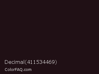 Decimal 411534469 Color is a almost black rose color and the nearest color is Night Rider #1f120f. Hex code #201015 and RGB value is rgb(32,16,21). In RGB color space, this color is composed of 13% red, 6% green, 8% blue, In CMYK color space, this color is composed of 0% cyan, 50% magenta, 34% yellow , 87% black , In HSL color space, this color has a hue angle of 341° , 33% saturation and 9% lightness.