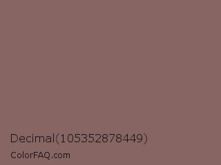 Decimal 105352878449 Color is a normal red color and the nearest color is Sand Dune #826f65. Hex code #866563 and RGB value is rgb(134,101,99). In RGB color space, this color is composed of 53% red, 40% green, 39% blue, In CMYK color space, this color is composed of 0% cyan, 25% magenta, 26% yellow , 47% black , In HSL color space, this color has a hue angle of 3° , 15% saturation and 46% lightness.