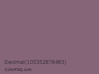 Decimal 105352878483 Color is a normal magenta color and the nearest color is Spicy Pink #816e71. Hex code #866579 and RGB value is rgb(134,101,121). In RGB color space, this color is composed of 53% red, 40% green, 47% blue, In CMYK color space, this color is composed of 0% cyan, 25% magenta, 10% yellow , 47% black , In HSL color space, this color has a hue angle of 324° , 14% saturation and 46% lightness.