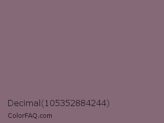 Decimal 105352884244 Color is a normal rose color and the nearest color is Spicy Pink #816e71. Hex code #866976 and RGB value is rgb(134,105,118). In RGB color space, this color is composed of 53% red, 41% green, 46% blue, In CMYK color space, this color is composed of 0% cyan, 22% magenta, 12% yellow , 47% black , In HSL color space, this color has a hue angle of 333° , 12% saturation and 47% lightness.