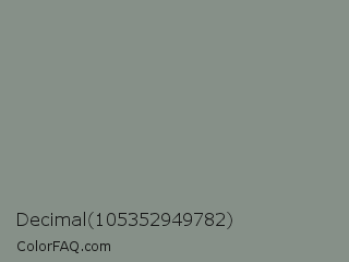 Decimal 105352949782 Color is a normal green color and the nearest color is Stack #8a8f8a. Hex code #869088 and RGB value is rgb(134,144,136). In RGB color space, this color is composed of 53% red, 56% green, 53% blue, In CMYK color space, this color is composed of 7% cyan, 0% magenta, 6% yellow , 44% black , In HSL color space, this color has a hue angle of 132° , 4% saturation and 55% lightness.