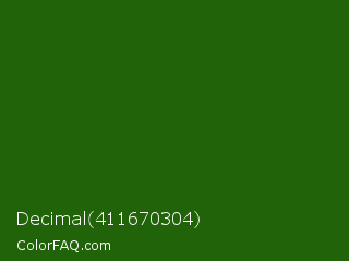 Decimal 411670304 Color is a very dark green color and the nearest color is Lincoln Green #195905. Hex code #206308 and RGB value is rgb(32,99,8). In RGB color space, this color is composed of 13% red, 39% green, 3% blue, In CMYK color space, this color is composed of 68% cyan, 0% magenta, 92% yellow , 61% black , In HSL color space, this color has a hue angle of 104° , 85% saturation and 21% lightness.