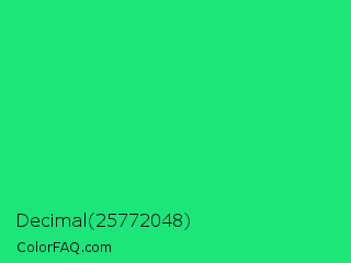 Decimal 25772048 Color is a normal green color and the nearest color is Spring Green #00ff7f. Hex code #1ce67a and RGB value is rgb(28,230,122). In RGB color space, this color is composed of 11% red, 90% green, 48% blue, In CMYK color space, this color is composed of 88% cyan, 0% magenta, 47% yellow , 10% black , In HSL color space, this color has a hue angle of 148° , 80% saturation and 51% lightness.