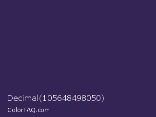 Decimal 105648498050 Color is a dark indigo color and the nearest color is Deep Grape #381a51. Hex code #342456 and RGB value is rgb(52,36,86). In RGB color space, this color is composed of 20% red, 14% green, 34% blue, In CMYK color space, this color is composed of 40% cyan, 58% magenta, 0% yellow , 66% black , In HSL color space, this color has a hue angle of 259° , 41% saturation and 24% lightness.