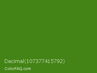 Decimal 107377415792 Color is a dark green color and the nearest color is La Palma #368716. Hex code #448416 and RGB value is rgb(68,132,22). In RGB color space, this color is composed of 27% red, 52% green, 9% blue, In CMYK color space, this color is composed of 48% cyan, 0% magenta, 83% yellow , 48% black , In HSL color space, this color has a hue angle of 95° , 71% saturation and 30% lightness.