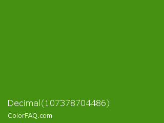 Decimal 107378704486 Color is a normal green color and the nearest color is Vida Loca #549019. Hex code #469112 and RGB value is rgb(70,145,18). In RGB color space, this color is composed of 27% red, 57% green, 7% blue, In CMYK color space, this color is composed of 52% cyan, 0% magenta, 88% yellow , 43% black , In HSL color space, this color has a hue angle of 95° , 78% saturation and 32% lightness.