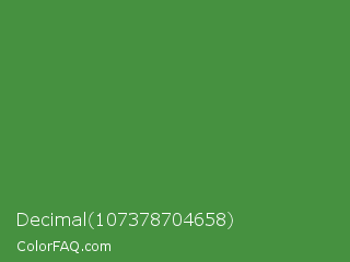 Decimal 107378704658 Color is a normal green color and the nearest color is May Green #4c9141. Hex code #469140 and RGB value is rgb(70,145,64). In RGB color space, this color is composed of 27% red, 57% green, 25% blue, In CMYK color space, this color is composed of 52% cyan, 0% magenta, 56% yellow , 43% black , In HSL color space, this color has a hue angle of 116° , 39% saturation and 41% lightness.