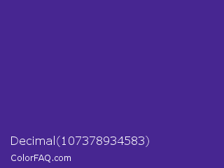 Decimal 107378934583 Color is a normal indigo color and the nearest color is Daisy Bush #4f2398. Hex code #472691 and RGB value is rgb(71,38,145). In RGB color space, this color is composed of 28% red, 15% green, 57% blue, In CMYK color space, this color is composed of 51% cyan, 74% magenta, 0% yellow , 43% black , In HSL color space, this color has a hue angle of 259° , 58% saturation and 36% lightness.