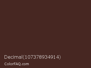 Decimal 107378934914 Color is a very dark red color and the nearest color is Crater Brown #462425. Hex code #472722 and RGB value is rgb(71,39,34). In RGB color space, this color is composed of 28% red, 15% green, 13% blue, In CMYK color space, this color is composed of 0% cyan, 45% magenta, 52% yellow , 72% black , In HSL color space, this color has a hue angle of 8° , 35% saturation and 21% lightness.