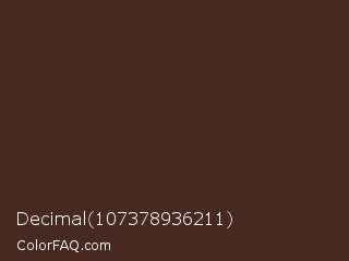 Decimal 107378936211 Color is a very dark red color and the nearest color is Crater Brown #462425. Hex code #472921 and RGB value is rgb(71,41,33). In RGB color space, this color is composed of 28% red, 16% green, 13% blue, In CMYK color space, this color is composed of 0% cyan, 42% magenta, 54% yellow , 72% black , In HSL color space, this color has a hue angle of 13° , 37% saturation and 20% lightness.