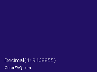 Decimal 419468855 Color is a dark indigo color and the nearest color is Violent Violet #290c5e. Hex code #221065 and RGB value is rgb(34,16,101). In RGB color space, this color is composed of 13% red, 6% green, 40% blue, In CMYK color space, this color is composed of 66% cyan, 84% magenta, 0% yellow , 60% black , In HSL color space, this color has a hue angle of 253° , 73% saturation and 23% lightness.